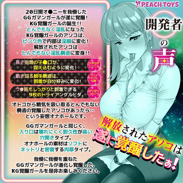 「GGガマンガール(b30082)」がついに覚醒!動き回る触手で精気を搾り取る非貫通型オナホ(ローション付)。我慢を重ね性欲を解放したアソコはとてつもない淫乱構造!?トライアングルヒダと触手の刺激で限界まで追い詰めて、ロング子宮口で先端をクポクポと咥え込み貴方の精を吸い付くす!挿入口は高耐久な穴開き仕様で、柔らかくねっとり絡んで密着する肉厚素材を使用。日本製