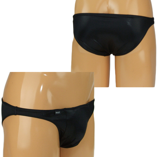 > メンズ 光沢ストレッチ生地玉袋付きフルバック Lブラック