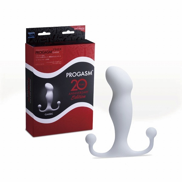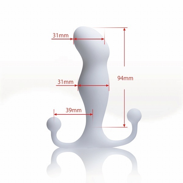 ちょい太め、スタイリッシュなフォルムのアネロス プロガズム!アナル挿入に慣れた人向けのアネロス製品の中でも最も太いタイプ。最大径31mm!エネマグラ系でトップクラスの異物感を誇る、白いプロガズムです。前後についた丸い突起で、会陰のツボと尾てい骨を圧迫刺激!さらに快感をサポートします。ドライオーガズムを得るだけでなく、挿入したまま女性とのSEXも可能!全身に鳥肌が立つぐらいの強い刺激だと評判です。