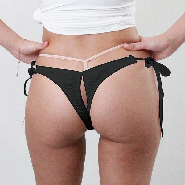> 光沢が有り肌触りの良い生地レース付き脇ヒモ股ワレTB Lサイズ ブラック