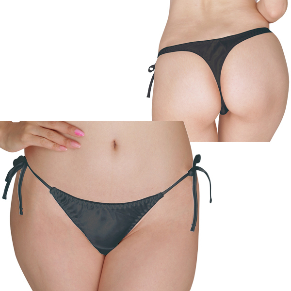 > 光沢サテン脇紐Tバック 2Lサイズ ブラック