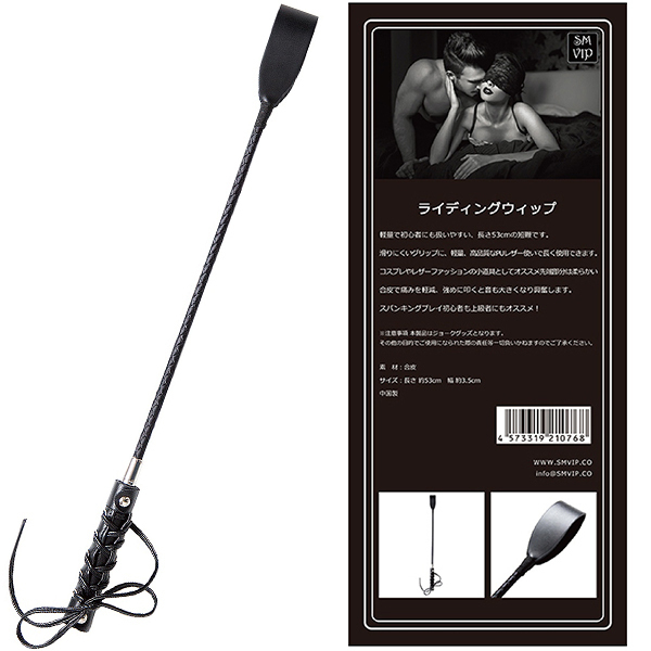 独特のしなりから生み出される打音に興奮!調教プレイに最適な「<SM VIP>ライディングウィップ」。軽量で扱いやすく、四つん這いで乗っかられながらのプレイに最適な乗馬鞭です♪打面の素材はフェイクレザーでグリップ部はレースアップ。SMライクなデザインも◎。打つときに素晴らしい打音が楽しめるので聴覚的にも興奮させてくれること間違いなし♪一般的なラブホでのプレイにぜひどうぞ。