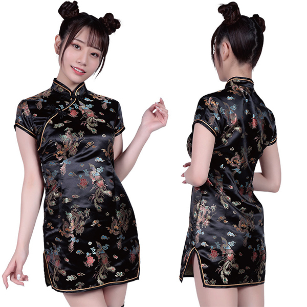 サイドスリットが良い感じのミニ丈なチャイナコスチュームです♪オーソドックスかつ超ミニスカートなデザイン!ボディラインを美しく仕上げてキレイなシルエットを魅せるとともに美脚もしっかりアピールできます♪色違いでお友だちとのお揃いにもおすすめ!
