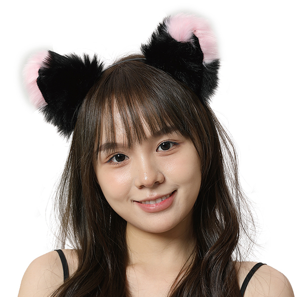 > エロコス もふもふ耳カチューシャ (黒×ピンク)