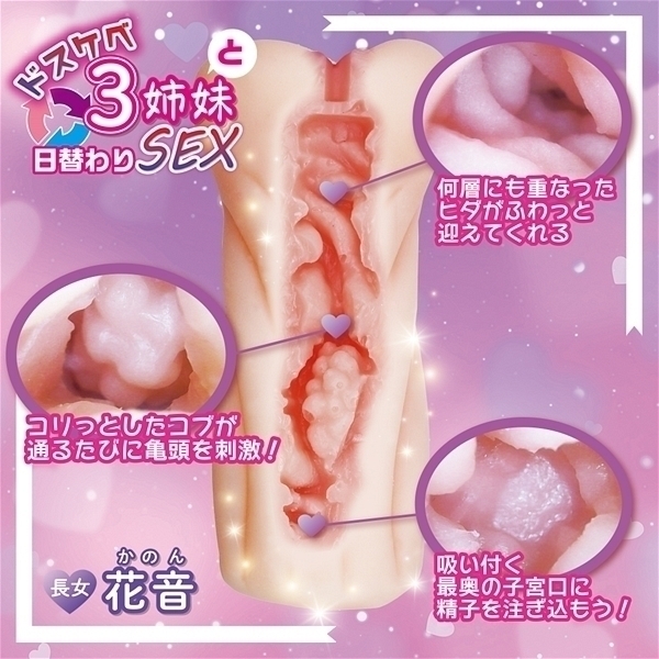 <優しくエッチな長女花音>とってもふわふわなやわらかおま○こが特徴の長女花音(かのん)。お姉ちゃんらしいキャラで、やさしくおち◯んちんをヨシヨシしてくれる。キュッとしまった入り口にふわふわぽってりな内壁が優しく竿を包み込んでくれます。コリコリとしたコブと、ゾリゾリ何層にも重なったヒダの刺激が快感を与え、すぐに絶頂までご案内!最奥の子宮口は吸い付くような形状で、たっぷりと精子を注ぎ込もう!!