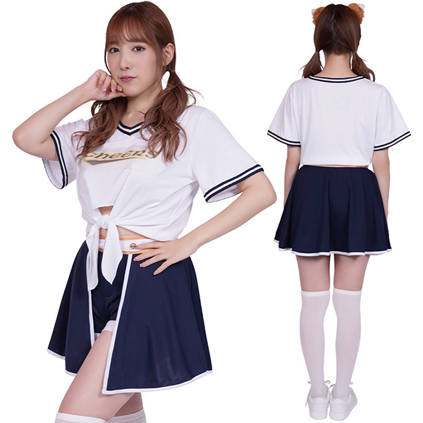 スポーツ応援には必須のチアガール。パンツとスカートを融合させたデザインは木枯らしが吹いても安心の鉄壁ガードスタイル。