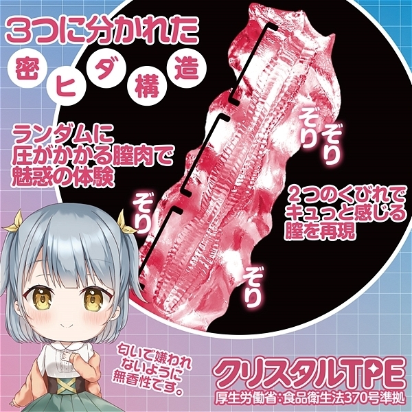 緊張して体に力が入ってしまう。そんな自然な硬さを再現。大人気「もちっ娘 透けルトン 生感トリプル・トゥーループ」の内部構造はそのままに初めての硬さを再現。六角形で作られた星型の内部構造は大きく3ブロックに分かれており、進む度にランダムな圧が波を打つ。緊張しているかのような硬さ×3連の波は何度でも試したくなる魅力があります。クリアピンクボディの見た目は美しさはもちろん、視認できるからとってもえちえち。