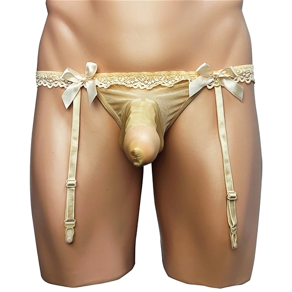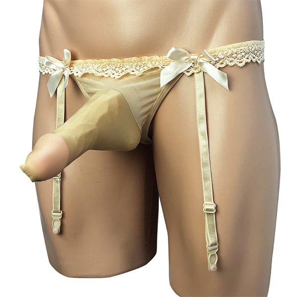 可愛いレースとリボンがあしらわれた、スケスケガーターベルト。伸縮性のある触り心地抜群な素材の玉袋もカバーするポール付。優しく大切な部分を包み込みます。前面の可愛らしいデザインと対象的に、お尻部分はセクシーなTバック仕様。可愛らしさとセクシーさを兼ね備えた最強メンズガーターベルトです。●カラー:スキン