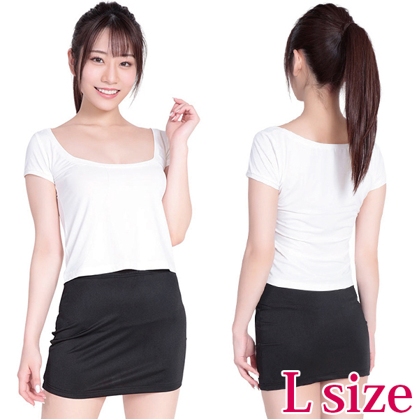 Lサイズ:Tシャツ(着丈47cm・袖丈12cm)、ミニスカート総丈37cm、サイズ目安(B86〜94cm・W69〜77cm・92〜100cm) パッケージ:28.0×16.0×1.6cm セット内容:Tシャツ、ミニスカート
