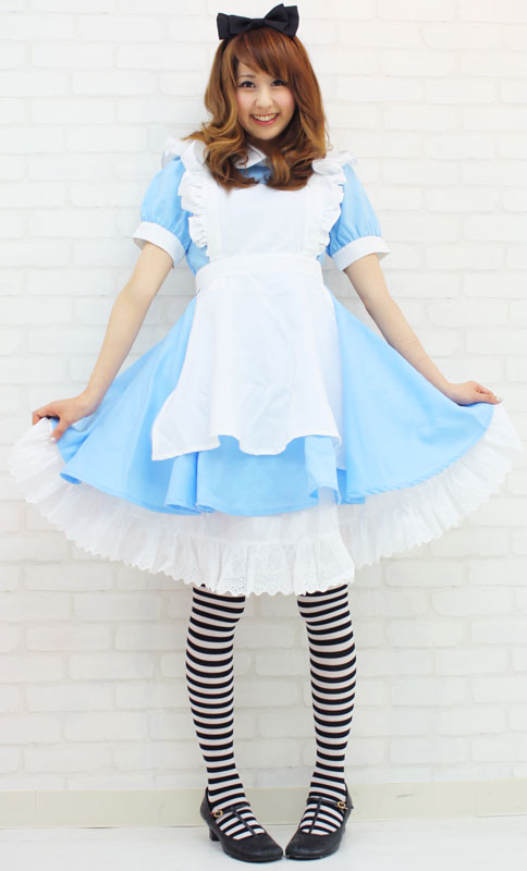 みんなの大好きな「不思議の国のアリス」!からアリス風メイド服が登場です!たっぷりのフリル使いで可愛らしさ満点!涼しげなサックスカラーにホワイトのエプロンは清潔感が溢れ出します。童話の世界から飛び出した夢のようなコスチュームに目が離せません!※水洗い不可、塩素系漂白剤による漂白不可、アイロンは中温で当て布使用、ドライクリーニング可、色落ちの可能性があります。※靴下は別売※こちらの商品は在庫の状況によりお届けまでに4日〜7日程度かかる場合がございます。