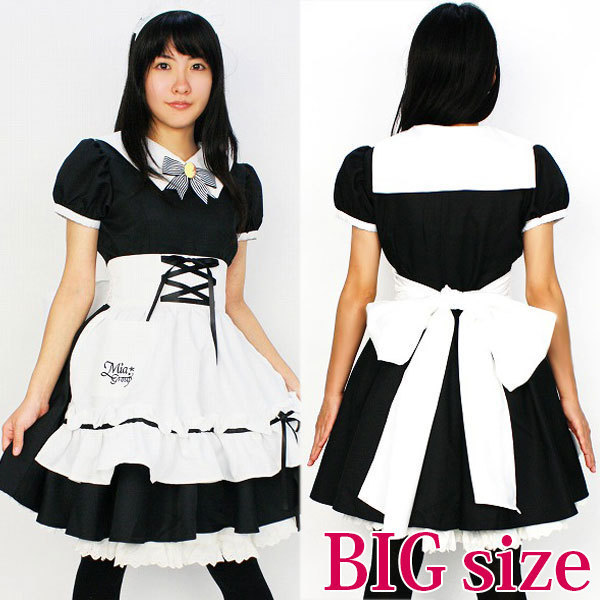 人気メイドカフェのオフィシャル制服「ミアリラクゼーション制服(BIG)」。ボリューム感たっぷりのパフスリーブとフリルスカートがとっても可愛い、黒白カラーのメイドコスチューム!キュートな付け襟とエプロンも必見です。※靴下は別売。水洗い不可、塩素系漂白剤による漂白不可、アイロンは中温で当て布使用、ドライクリーニング可。色落ちの可能性があります、ご注意ください。※こちらの商品は在庫の状況によりお届けまでに4日〜7日程度かかる場合がございます。