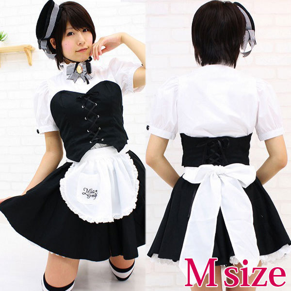 人気メイドカフェの制服が登場!ビスチェとふんわりミニ丈スカートのオシャレなメイド服!帽子や、ブローチ、カチューシャと小物も充実して、完璧なミアカフェメイドさんになれちゃうコスプレ衣装です。※水洗い不可、塩素系漂白剤による漂白不可、アイロンは中温で当て布使用、ドライクリーニング可、色落ちの可能性があります。※こちらの商品は在庫の状況によりお届けまでに4日〜7日程度かかる場合がございます。