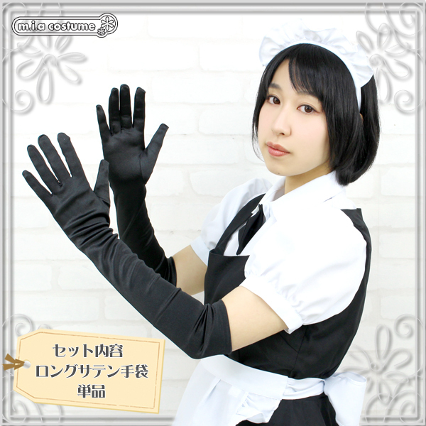 プリンセスドレス、メイド服、チャイナドレスなどのコスプレやワンピースにも合わせられるロング手袋(黒)。サテン生地なので高級感もUP!きちんと手にフィットし、着け心地もとってもいい感じです!長さは肘上くらいになります。手袋は意外と重宝するもの!他のコスプレとも相性は抜群です。※水洗い可、塩素系漂白剤による漂白不可、ドライクリーニング可。※こちらの商品は在庫の状況によりお届けまでに4日〜7日程度かかる場合がございます。