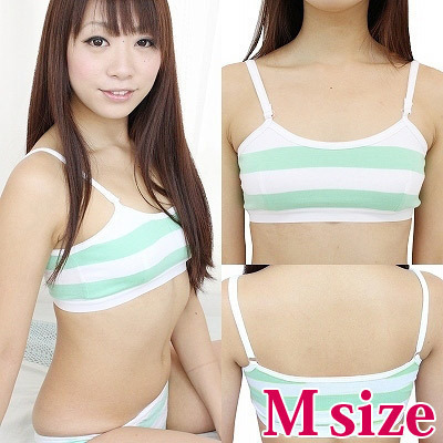 楽チン!かわいい!グリーン×ホワイトのしましま柄スポーツブラ(M)。太めのボーダー柄でピュア感たっぷり!もちろん肩紐の調節も可能です。しまパンと併せれば萌え度もさらにUP!普段着やコスプレ衣装のお供にどうぞ。※水洗い不可、塩素系漂白剤による漂白不可、アイロンは中温で当て布使用、ドライクリーニング可、色落ちの可能性があります※こちらの商品は在庫の状況によりお届けまでに4日〜7日程度かかる場合がございます