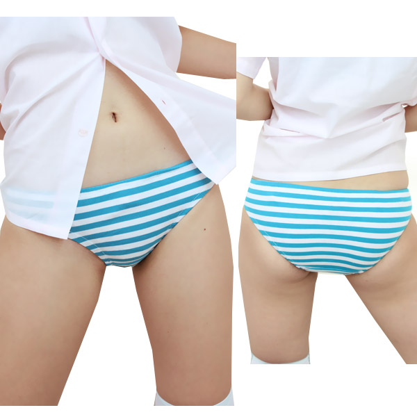 ターコイズ×ホワイトのしまパンに、細めのボーダー柄が登場!細かいしましま柄がとってもラブリー!ミニ丈のコスプレ衣装とあわせれば、見せパンとしてもバッチリ活躍してくれる、萌え度MAXなボーダー柄ショーツです。※水洗い不可、塩素系漂白剤による漂白不可、アイロンは中温で当て布使用、ドライクリーニング可、色落ちの可能性があります。※こちらの商品は在庫の状況によりお届けまでに4日〜7日程度かかる場合がございます。
