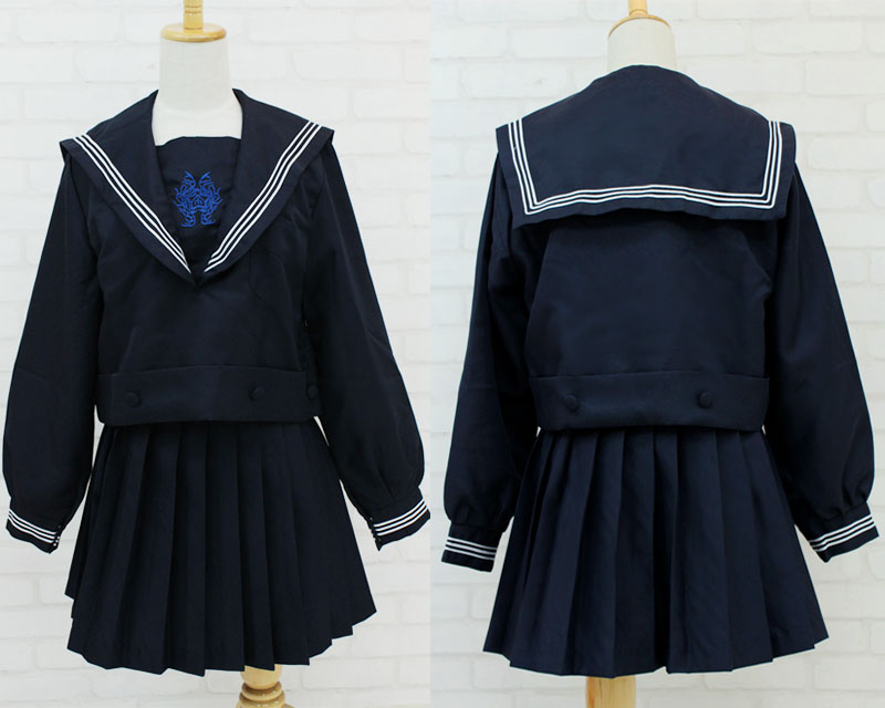 胸元の青い刺繍はお嬢様の証!大きいセーラー襟が清楚な冬服タイプの制服コスプレセット(BIG)。清潔感ある白い3本ラインが入った濃紺の長袖セーラー服は、サイドファスナー仕様。プリーツスカートはアジャスターで調節可能です。ベルト風にウエストをマークするデザインは、レトロで伝統ある学校の風合いを醸し出します。タイやスカーフがなくてもここまで可愛く仕上がった、大きめサイズのセーラー服コスチュームです!※水洗い不可、塩素系漂白剤による漂白不可、アイロンは中温で当て布使用、ドライクリーニング可、色落ちの可能性があります。※こちらの商品は在庫の状況によりお届けまでに4日〜7日程度かかる場合がございます。