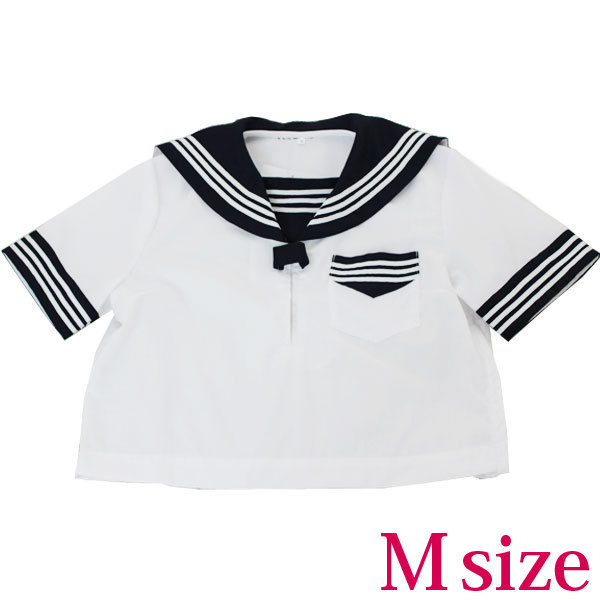 自分流にアレンジできちゃう!爽やかな夏服タイプの半袖セーラーブラウス単品(M)。襟や袖、胸ポケットに入った白の3本ラインがオシャレ!一着は持っておきたい定番のセーラー服コスプレです。お気に入りのスカートや、お手持ちのスカーフとあわせて可愛く着こなしてください!※水洗い不可、塩素系漂白剤による漂白不可、アイロンは中温で当て布使用、ドライクリーニング可、色落ちの可能性があります。※こちらの商品は在庫の状況によりお届けまでに4日〜7日程度かかる場合がございます。