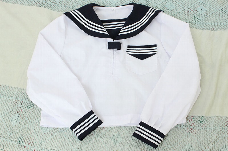 定番コスプレを自分流にアレンジ!オールシーズン使える中間服タイプの長袖セーラーブラウス単品(M)。襟や袖、胸ポケットに入った白の3本ラインがオシャレ!一着は持っておきたい定番のセーラー服コスプレです。お気に入りのスカートや、お手持ちのスカーフとあわせて可愛く着こなしてください!※水洗い不可、塩素系漂白剤による漂白不可、アイロンは中温で当て布使用、ドライクリーニング可、色落ちの可能性があります。※こちらの商品は在庫の状況によりお届けまでに4日〜7日程度かかる場合がございます。