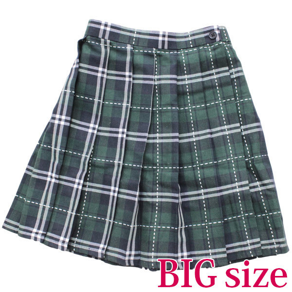 キュートなステッチ入り!グリーン×ネイビーのチェック柄プリーツスカート(BIG)。定番のチェック柄に白ステッチを施したお洒落デザイン!これ一枚でいつもとは違う雰囲気を楽しめるお役立ち制服コスチュームです。※水洗い不可、塩素系漂白剤による漂白不可、アイロンは中温で当て布使用、ドライクリーニング可、色落ちの可能性があります、ご注意ください。※こちらの商品は在庫の状況によりお届けまでに4日〜7日程度かかる場合がございます。
