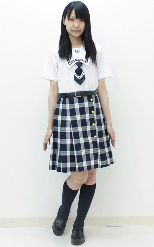 セーラー服より大人っぽい!大きな襟の上着と白黒チェックの巻きスカートが爽やかなコスチューム。ボックスプリーツに4つの金ボタンがポイント!ミニネクタイが可愛い半袖トップスと、ベルト付き巻きスカートがセクシーな学園風の制服コスチュームです。※水洗い不可、塩素系漂白剤による漂白不可、アイロンは中温で当て布使用、ドライクリーニング可、色落ちの可能性があります、ご注意ください。※こちらの商品は在庫の状況によりお届けまでに4日〜7日程度かかる場合がございます。