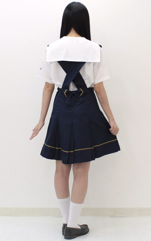 デザイン性の高さで大人気!セーラーカラーとストライプリボンがマッチした夏用制服コスプレ(Mサイズ)。ブラウスの袖にロゴ、ライン入りジャンパースカートの後ろには、大きなリボンも付いています。どこから見ても抜かりないオシャレな制服コスチュームです。※水洗い不可、塩素系漂白剤による漂白不可、アイロンは中温で当て布使用、ドライクリーニング可、色落ちの可能性があります、ご注意ください。※こちらの商品は在庫の状況によりお届けまでに4日〜7日程度かかる場合がございます。