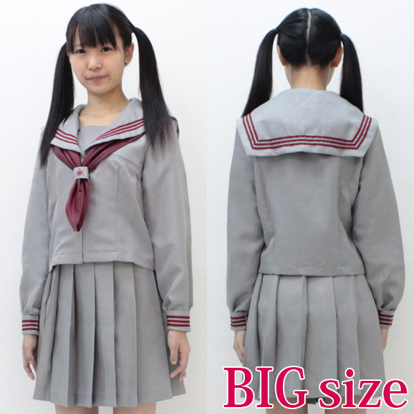 目立つこと間違いなしのグレー×ボルドー!定番の学生服にも個性をプラスできる、長袖タイプの冬服コスチューム(BIG)。前ファスナーのブラウスは、胸当てや袖口もボタン留めで着脱簡単!膝上丈のプリーツスカートが可愛らしい制服コスチュームです。※水洗い不可、塩素系漂白剤による漂白不可、アイロンは中温で当て布使用、ドライクリーニング可、色落ちの可能性があります、ご注意ください。※こちらの商品は在庫の状況によりお届けまでに4日〜7日程度かかる場合がございます。