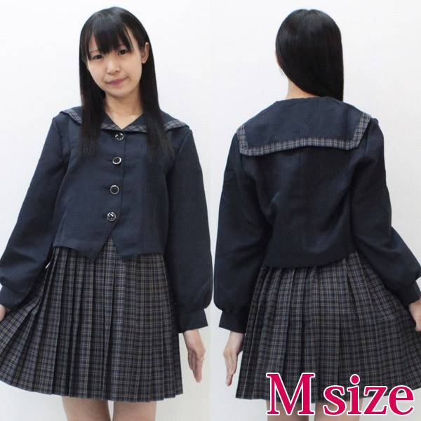 デザイン性バツグン!オシャレな紺チェック柄の冬制服コスプレ(Mサイズ)。プリーツスカートと同柄チェックで縁取ったセーラー風の襟がキュート!どこか素朴な雰囲気を持った、可愛らしい制服コスチュームです。※水洗い不可、塩素系漂白剤による漂白不可、アイロンは中温で当て布使用、ドライクリーニング可、色落ちの可能性があります、ご注意ください。※こちらの商品は在庫の状況によりお届けまでに4日〜7日程度かかる場合がございます。