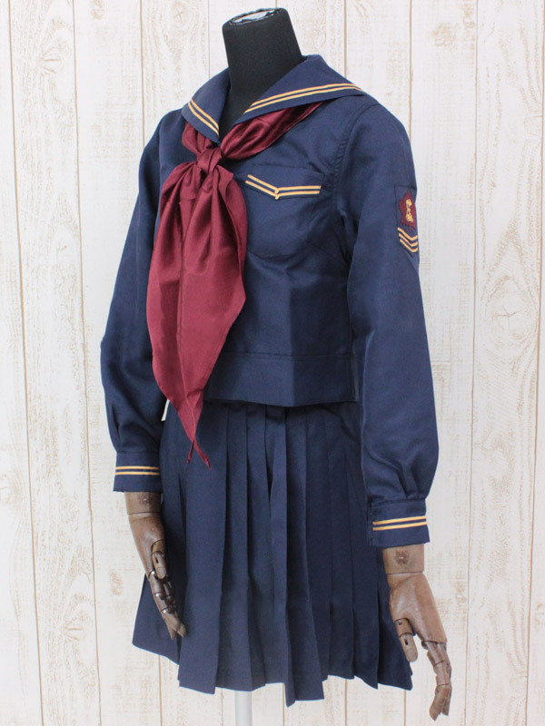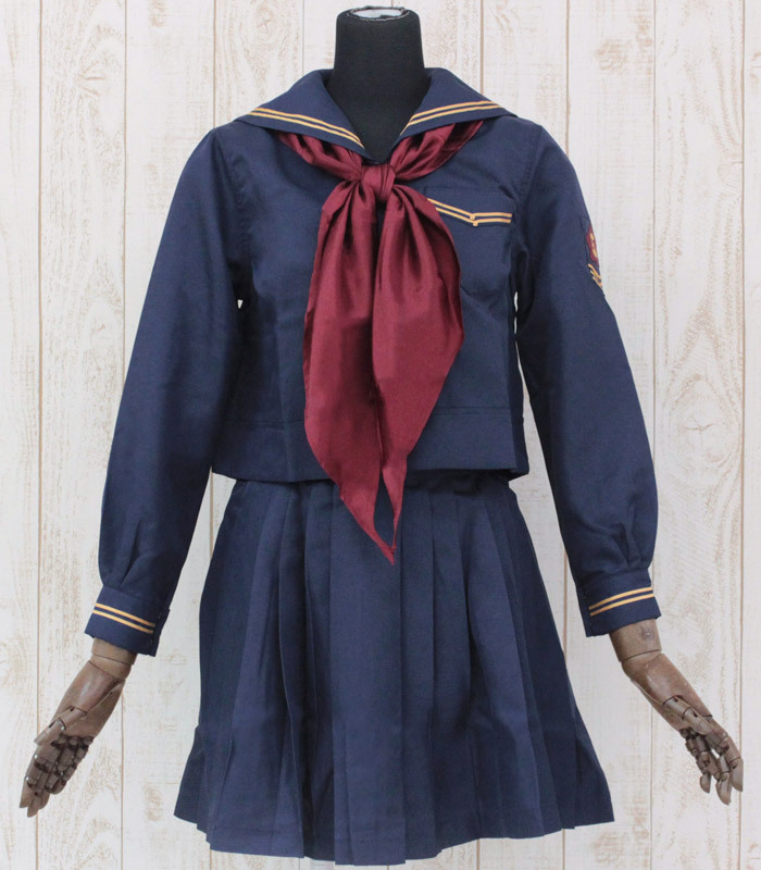 胸当てのないセーラー襟がクラシック!長い伝統を誇る女子学院風の制服コスチューム。濃紺にエンジ色の長いスカーフがポイント!茶系のダブルラインが珍しい長袖セーラートップスと、無地のプリーツスカートがエレガントな制服コスチュームです。※水洗い不可、塩素系漂白剤による漂白不可、アイロンは中温で当て布使用、ドライクリーニング可、色落ちの可能性があります、ご注意ください。※こちらの商品は在庫の状況によりお届けまでに4日〜7日程度かかる場合がございます。