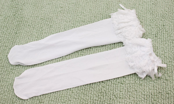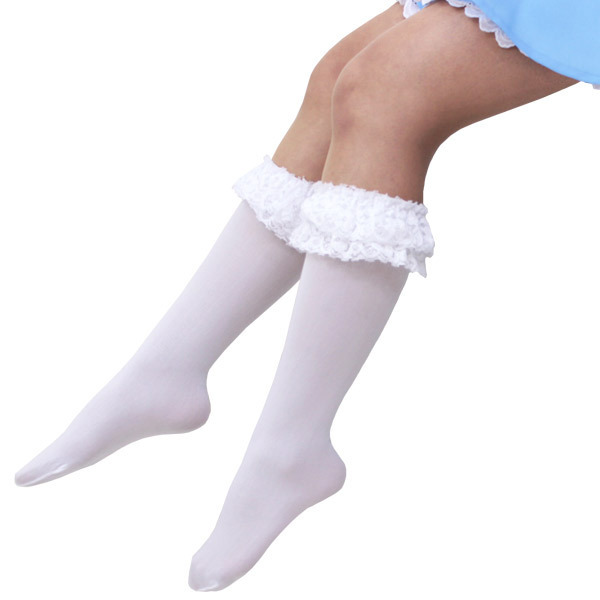 フリーサイズ:22〜25cm 丈(はき口からつま先まで)約43cm・履き口約18cm・レース縦幅5.5cm 素材:ナイロン