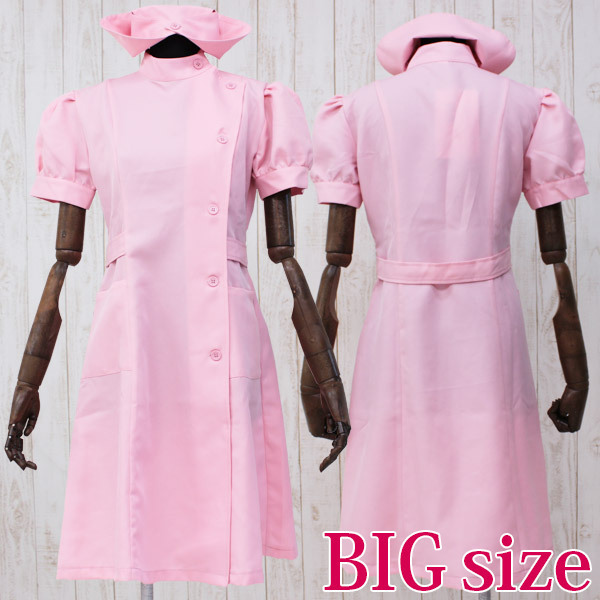 ボリュームのある半袖パフスリーブがキュート!女装に最適なBIGサイズの桃色ナース服セット。左寄りのアシンメトリーな前合わせが本格的!丈が長めのAラインワンピース&ナースキャップで、可愛く変身できるコスチュームです。※水洗い不可、塩素系漂白剤による漂白不可、アイロンは中温で当て布使用、ドライクリーニング可、色落ちの可能性があります、ご注意ください。※こちらの商品は在庫の状況によりお届けまでに4日〜7日程度かかる場合がございます。