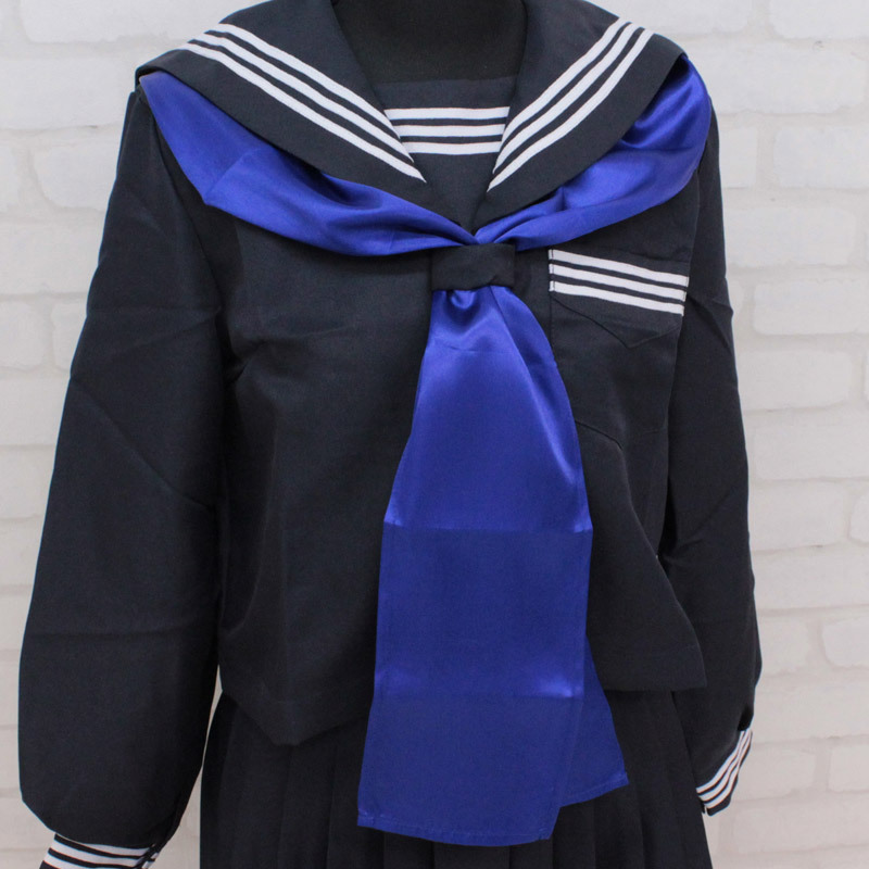 セーラー服や学生服コスプレをもっと可愛く着こなしたいあなたに!ブルーサテンで仕上げたスクールスカーフ(単品)です。スカーフを装着することで一気に華やかに!様々なコーデで大活躍するオシャレアイテムです。※水洗い不可、塩素系漂白剤による漂白不可、アイロンは中温で当て布使用、ドライクリーニング可、色落ちの可能性があります、ご注意ください。※こちらの商品は在庫の状況によりお届けまでに4日〜7日程度かかる場合がございます。