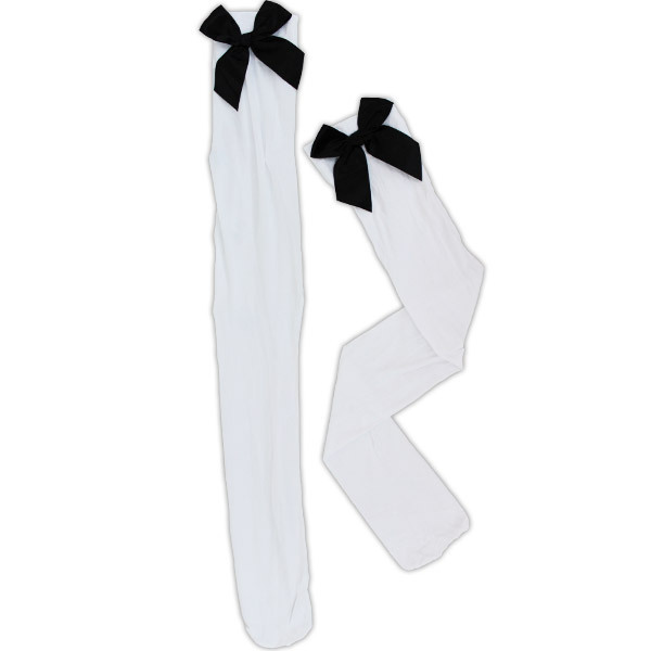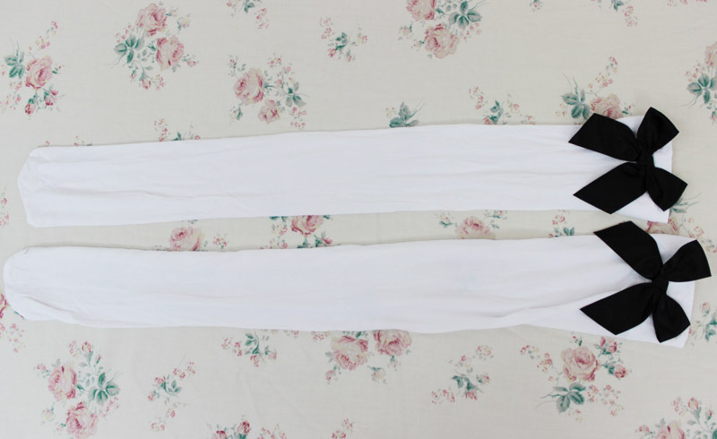 > リボン付きニーハイ 白×黒リボン