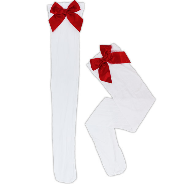 メイド服やアイドル衣装と相性バッチリな赤リボン付きニーハイソックス。●白×赤リボンが女の子らしさをUP●伸縮性があるのでしっかりフィットし、履き心地GOOD。キュートさをプラスしたい時にあると便利なコスプレアイテムです。※こちらの商品は在庫の状況によりお届けまでに4日〜7日程度かかる場合がございます。