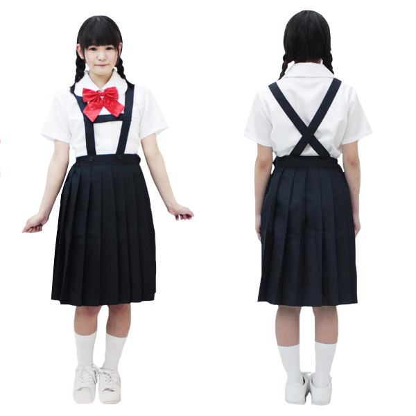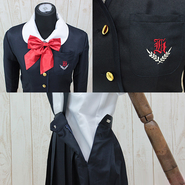 人気私立学校の制服を再現!お嬢様な気分を味わえる萌え系制服セット。●可愛い丸襟タイプの半袖ブラウス●アジャスター調節可能な赤リボン●金ボタン留め&刺繍入り胸ポケット付きのブレザー●H型フロント・X型バックのストラップ付き吊りスカート●膝にかかる程度の長めなお嬢様丈。ブレザーを着ても脱いでも可愛い、正統派のお嬢様制服コスチューム。スカートの個性的なストラップが特徴的です。※水洗い不可、塩素系漂白剤による漂白不可、アイロンは中温で当て布使用、ドライクリーニング可、色落ちの可能性があります。