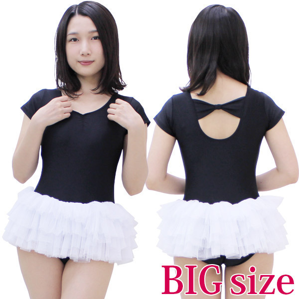 > チュールスカート付き半袖レオタード(後ろリボン) 黒×白 BIG