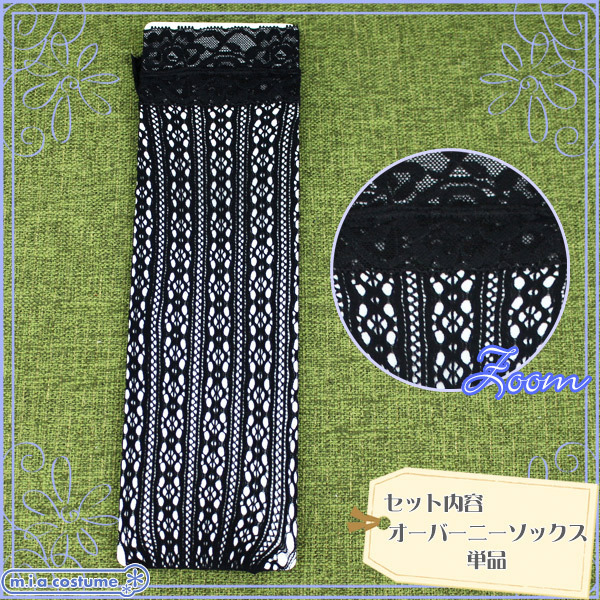 > レース付き花柄メッシュニーハイソックス 黒 140〜160cm