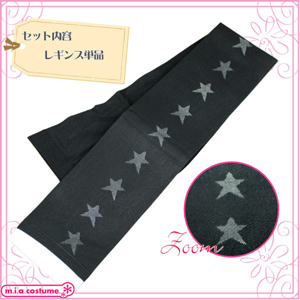 > 七分丈星柄レギンス 40デニール 黒 M〜L