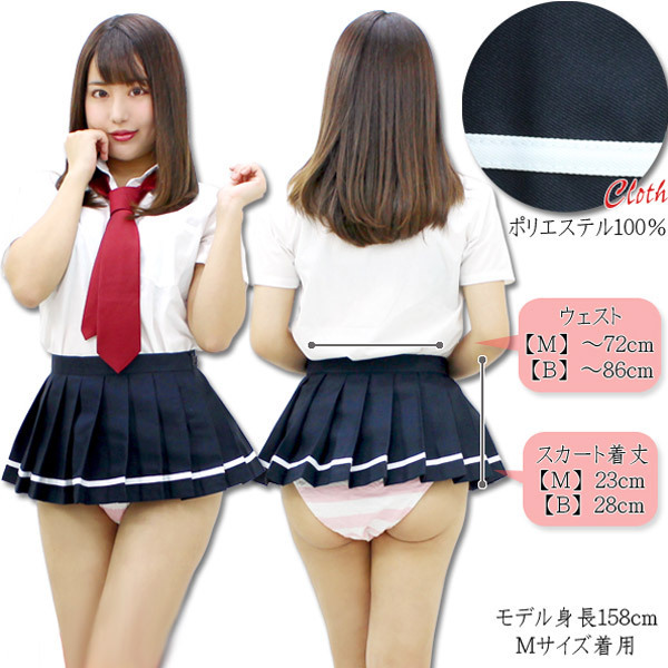 超ミニ無地プリーツスカート単品 紺×白ライン M