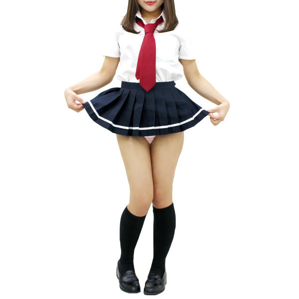 超ミニ無地プリーツスカート単品 紺×白ライン BIG