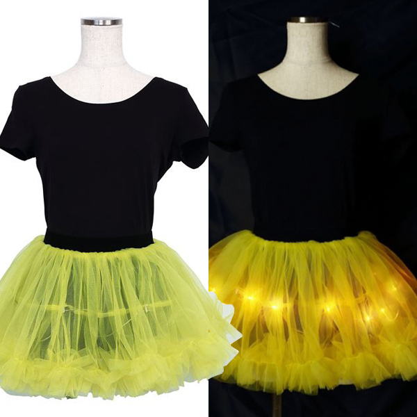 ピカピカと光る!闇夜に映えるポップなパニエ♪内側についた光るワイヤーが点灯し、いつものコスチュームを輝かせます♪光るワイヤーは増やすことも可能なので、さらに目立ちたいなら別売りのワイヤーを追加するのも有り!皆の視線が一斉に貴方へ注がれることでしょう♪セットにはパニエとグリーンの光るワイヤー、電池ボックスがついており、光るワイヤーを取り外してパニエだけ使っていただくことも可能です。パニエのみ洗濯することも可能なので、繰り返し使用していただけます!※洗濯機不可(弱い手洗い可)、塩素系漂白剤による漂白不可、アイロン不可、ドライクリーニング不可。※対応サイズの目安:身長〜180cm・B〜101cm・W〜88cm・H〜99cm