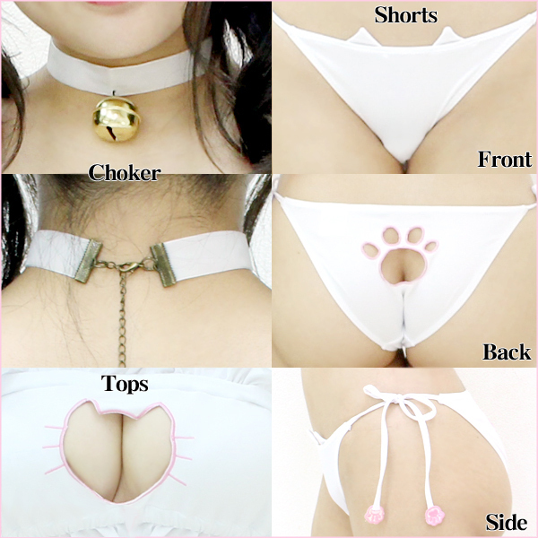 > 猫水着 白