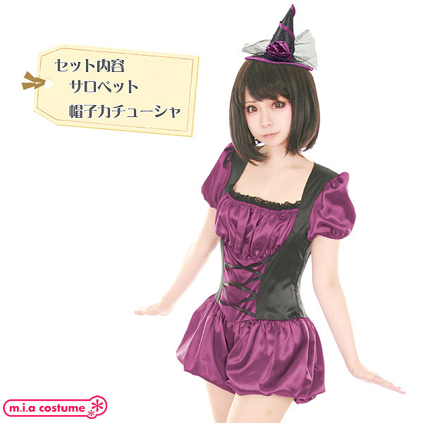 ハロウィンパーティにもってこい♪ダークポップに仕上げた可愛い魔女コスプレ大きめサイズ。光沢のあるサテン風の生地を使用したサロペットに、三角帽子が付いたカチューシャのセット商品♪パフ袖や丸みのあるかぼちゃパンツがとってもキュートなデザインです。元気な魔女っ娘になりきってハロウィンを楽しもう!※塩素系漂白剤による漂白不可、洗濯の際はリボンなどの付属品を外し個々単独での手洗いをお願いします、色落ちの可能性があります。※こちらの商品は在庫の状況によりお届けまでに4日〜7日程度かかる場合がございます。