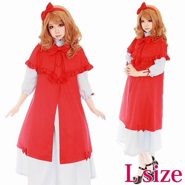 ハロウィン仮装や文化祭用の衣装にも最適♪名作童話の主人公になりきれる!ロングドレスでクラシカルにまとめたロリータ風赤ずきんコスプレ。フリルやリボンをあしらった真っ赤なマントに、ハイネックの白ロングワンピを合わせることで上品かつ可愛くデザイン!袖口に小さなリボンを飾っているところにも、こだわりを感じる一着です。カチューシャ付※塩素系漂白剤による漂白不可、洗濯の際はリボンなどの付属品を外し個々単独での手洗いをお願いします、色落ちの可能性があります。※こちらの商品は在庫の状況によりお届けまでに4日〜7日程度かかる場合がございます。