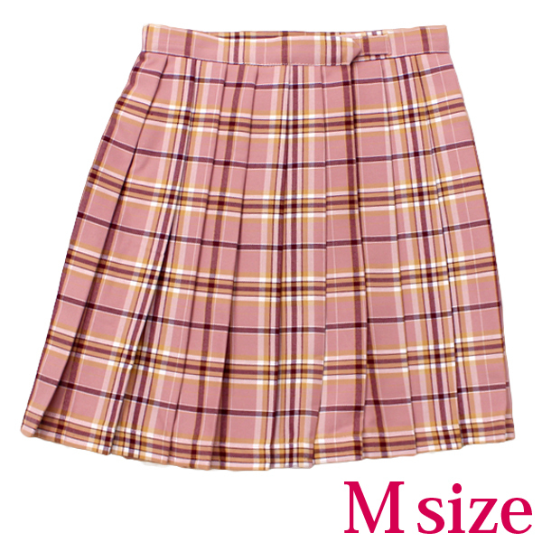 > ポケット付きのチェック柄プリーツスカート単品 ピンク×キャメル Mサイズ