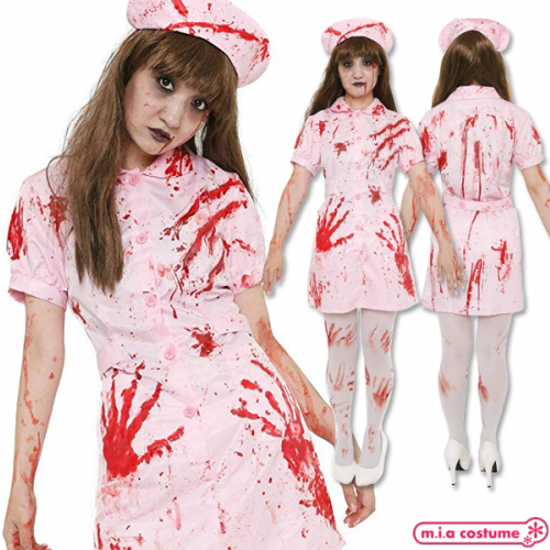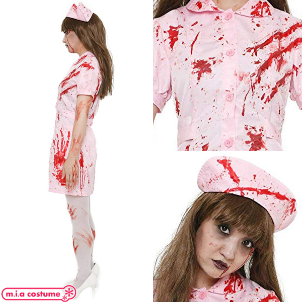 ホラーメイクをすれば雰囲気マシマシ!血糊が付いたピンクカラーのナースコスプレ。ハロウィン大人気のゾンビなナースになりきろう♪ワンピース、ナースキャップ、血糊がセットになった3点セット。友達やパートナーと一緒に仮装してホラーナイトハロウィン!※水洗い不可、塩素系漂白剤による漂白不可、アイロンは中温で当て布使用、石油系ドライクリーニング可、色落ちの可能性があります。※こちらの商品は在庫の状況によりお届けまでに4日〜7日程度かかる場合がございます。
