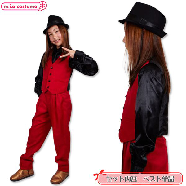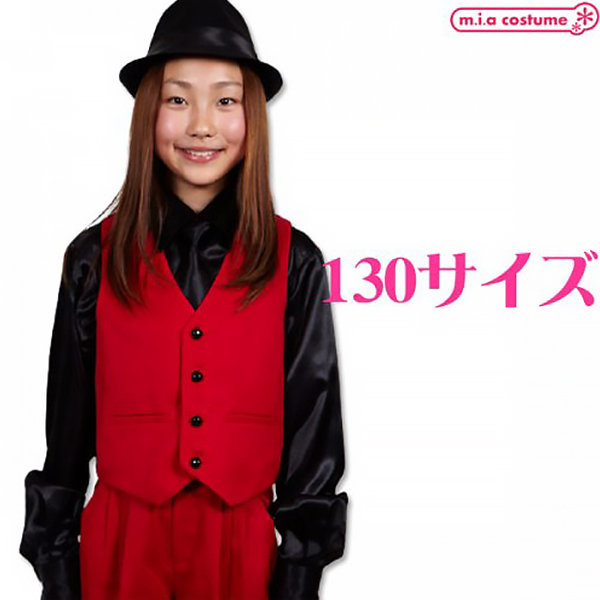 鮮やかなレッドカラーが映える!ステージ衣装の定番、カラーベストです。サテンシャツ等との相性も抜群!カラーベストのみでも、お手持ちの衣装と組み合わせて、あなただけの衣装を考えるのも楽しいですね♪カラーは多色展開。両サイドにはポケット付きです。こちらは130サイズです。※水洗い不可、塩素系漂白剤による漂白不可、アイロン不可、ドライクリーニング可