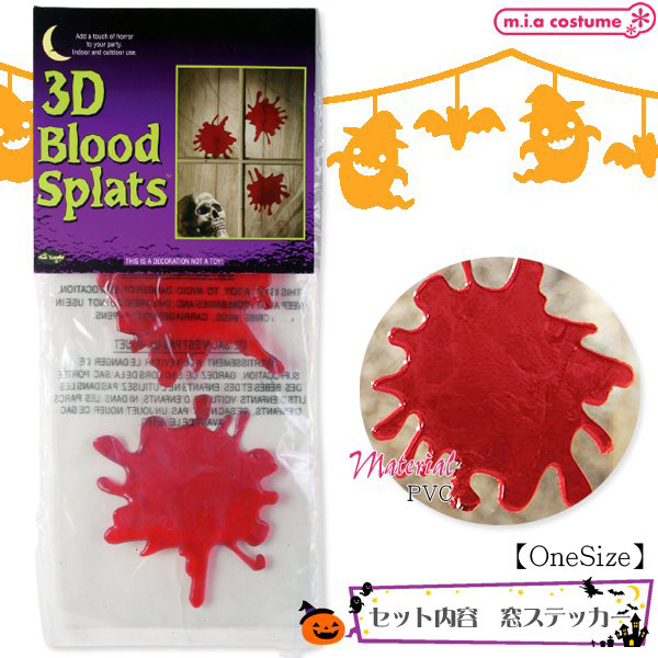 ハロウィンパーティやコスプレイベント、文化祭などで大活躍!血塗られた窓を手軽に再現できる「3D Blood splats(3枚入り)」。ハロウィンやお化け屋敷、文化祭でこれを使ってみんなを驚かせよう♪個人のアレンジが光る3Dブラッドスプラットしずく!怖さがパワーアップしてオリジナリティもアップします♪