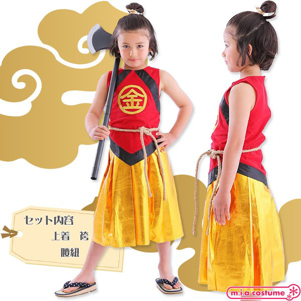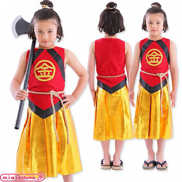 ありそうでなかった金太郎のコスチュームです♪胸の部分の「金」の刺繍が本格的で高級感があります!袴風スカートはウエストゴムで着脱も簡単♪寒い日はインナーを着用し、ベスト風に着てもかっこいいですよ。※洗濯不可、塩素系漂白剤による漂白不可、アイロン不可、ドライクリーニング不可