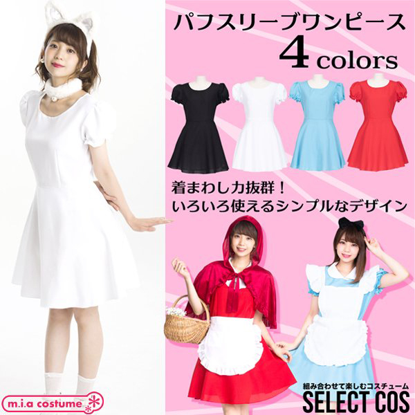 着回し力に定評があるコスプレシリーズ♪パフスリーブワンピースはガーリーなテイストにぴったり。猫耳カチューシャを合わせれば、お洒落な白猫に変身!着こなしも、着まわしも色々と自分好みでセレクトしてオリジナルのコーディネートが楽しめちゃう♪他にもセレクトシリーズの小物を合わせて色々なコスプレを楽しんでね。※洗濯機不可、弱い手洗い可、塩素系漂白剤による漂白不可、アイロンは中温で当て布使用、石油系ドライクリーニング可