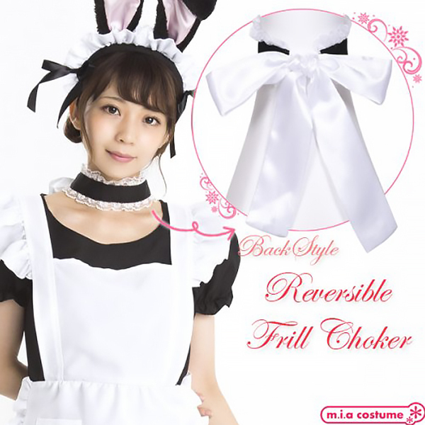 あなただけのこだわりが光る!セレクトしてオリジナルのコーディネートが楽しめちゃうコスプレシリーズから、大きめのリボンが可愛いリバーシブルのフリルチョーカーが登場です♪白と黒を使い分けるのはもちろん、結び目を前にしても後ろにしても可愛いです。リボンを結ぶ位置で首周りの長さ調節も可能!セレクトシリーズのワンピースや小物を合わせて色々なコーディネートを楽しんでね♪